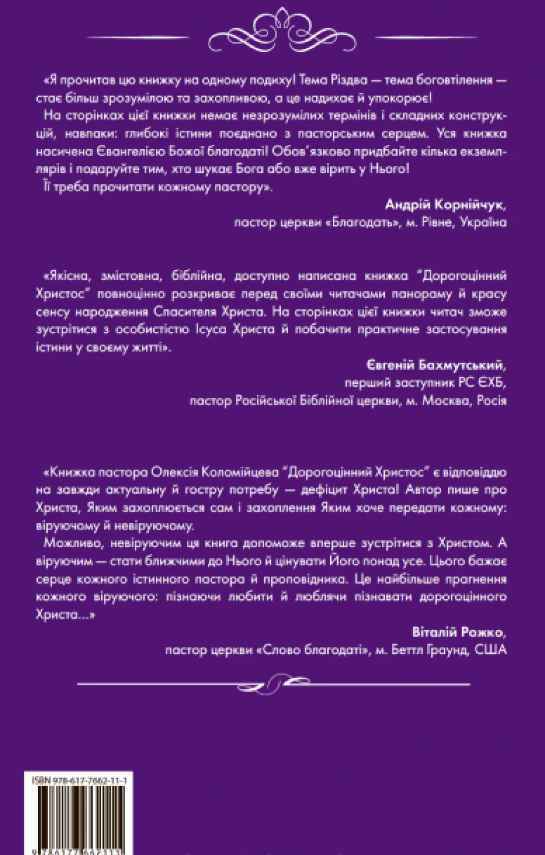 Ця невелика книга пройме вас трепетом перед неосяжним таїнством боговтілення, незалежно від ваших релігійних поглядів. Але, крім захоплення, ви дістанете багато надзвичайно важливих істин про справжнє біблійне спасіння від вини, пекла й безцільного існування.