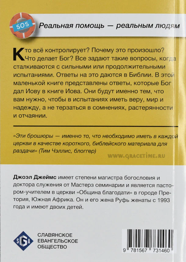 Кто всё контролирует? Почему это произошло? Что делает Бог? Все задают такие вопросы, когда сталкиваются с сильными или продолжительными испытаниями. Ответы на это даются в Библии. В этой маленькой книге представлены ответы, которые Бог дал Иову в книге Иова. Они будут именно тем, что вам нужно, чтобы в испытаниях иметь веру, мир и надежду, а не терзаться в сомнениях, растерянности и отчаянии.