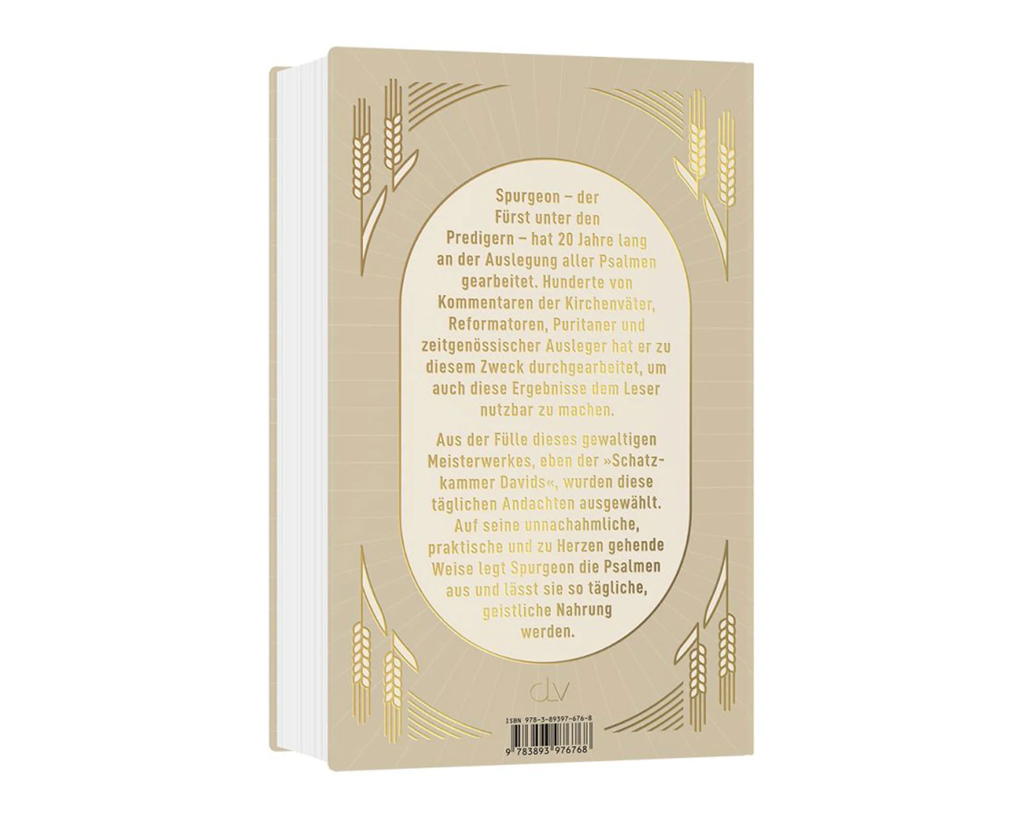 Aus der Fülle dieses gewaltigen Meisterwerkes, eben der »Schatzkammer Davids«, wurden diese täglichen Andachten ausgewählt. Auf seine unnachahmliche, praktische und zu Herzen gehende Weise legt Spurgeon die Psalmen aus und lässt sie so tägliche, geistliche Nahrung werden.