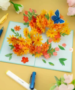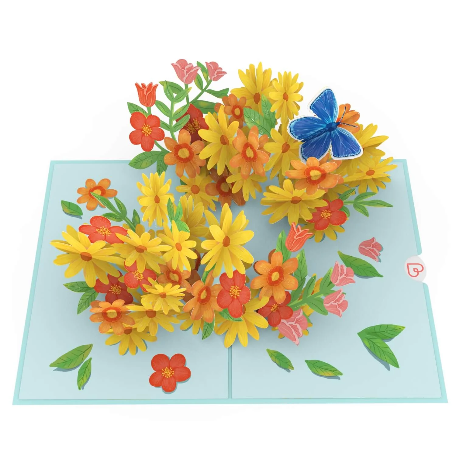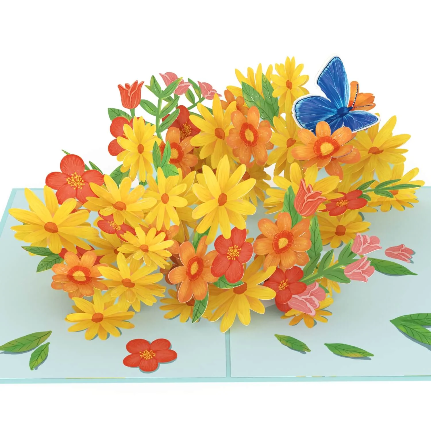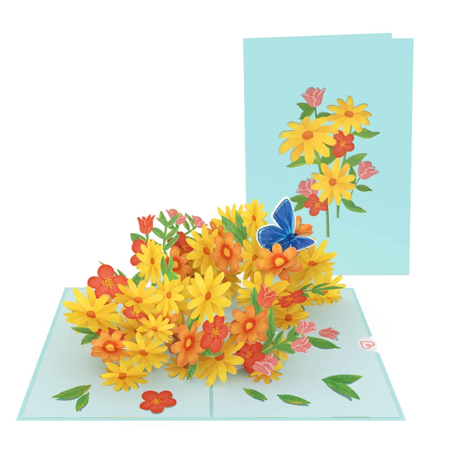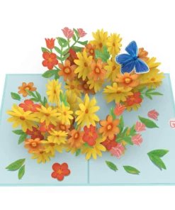 Bunte Gänseblümchen mit Schmetterling Pop-Up Karte