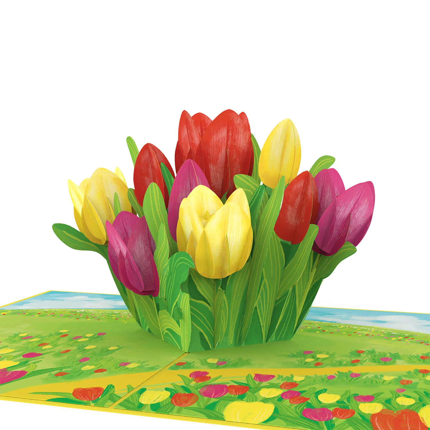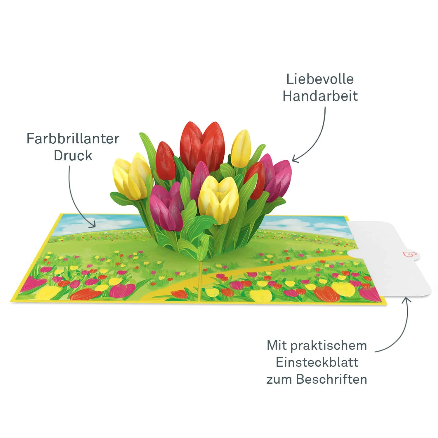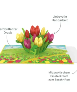 Handgemachte Pop Up Karte Bunte Tulpenwiese mit 3D-Effekt