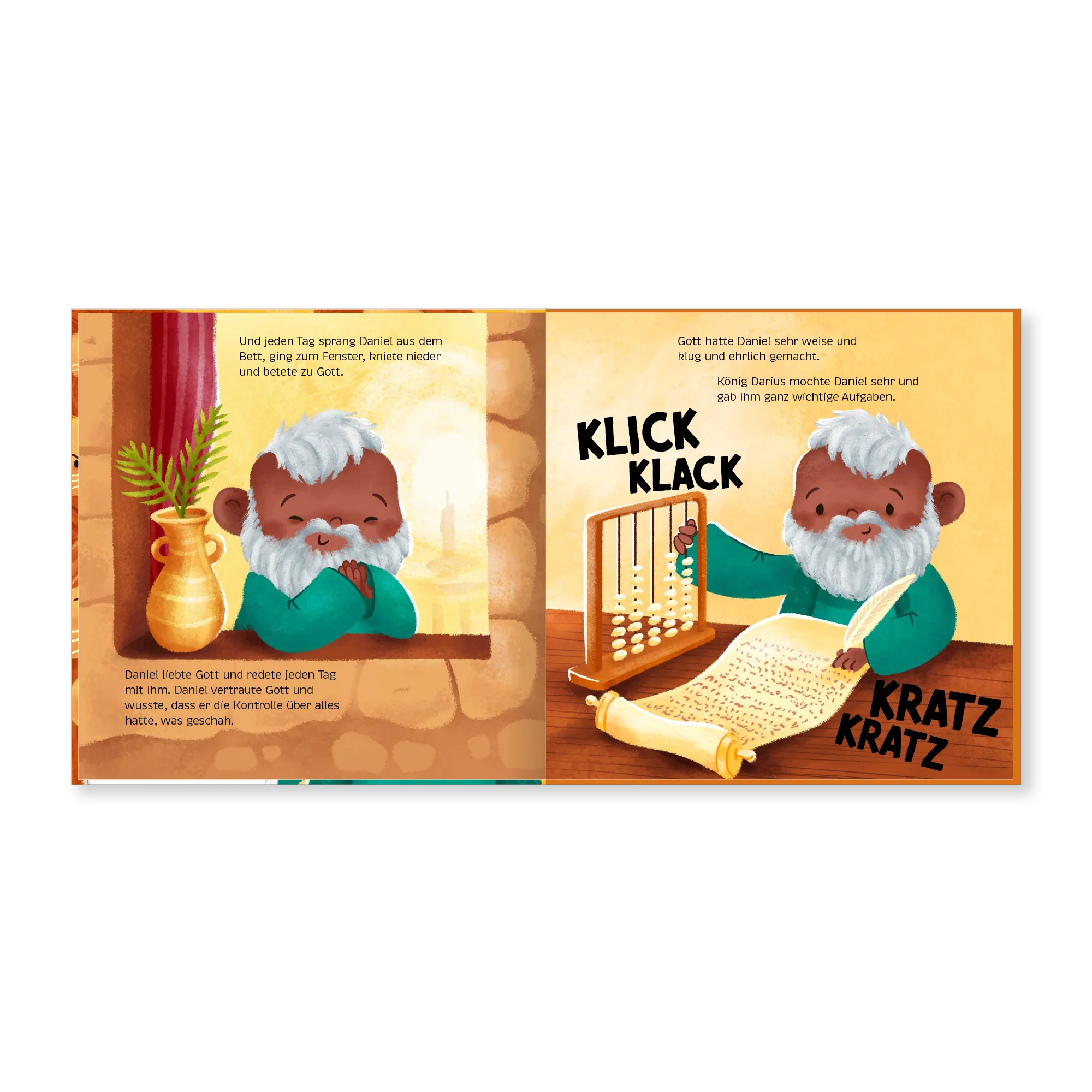 In dieser originell und wahrheitsgetreu nacherzählten Bibelgeschichte erfahren Kinder, wie Gott Daniel vor unglaublich hungrigen Löwen beschützt hat. Durch das farbenfroh illustrierte Buch erfahren Kinder zusammen mit dem König Darius, dass Gott der einzig wahre Gott ist. Ausmalbilder helfen, die Geschichte zu reflektieren.
