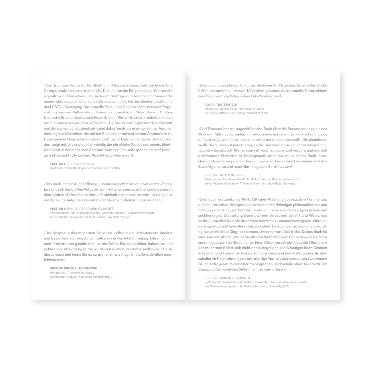 Die moderne Kultur wird zunehmend von Fragen und Antworten rund um die sexuelle Identität beeinflusst – ob im öffentlichen Diskurs oder bei kulturellen Trends. Jedes gesellschaftliche Phänomen hat seine historischen Wurzeln. Von Augustinus, über Rousseau bis hin zu Marx oder Freud sind unterschiedliche Auffassungen des Selbst vorgestellt worden. Im 20. Jahrhundert wurden diese Konzepte des Selbst nicht nur psychologisiert und eng mit der Sexualität verschränkt, sondern unter dem Einfluss von Leuten wie Reich, Marcuse und anderen ebenfalls zu einer politischen Angelegenheit gemacht. Der Historiker Carl Trueman untersucht in seinem Buch Der Siegeszug des modernen Selbst die Sichtweisen auf das »Selbst«, die schlussendlich zur sexuellen Revolution beigetragen haben und seitdem tief in unsere Alltagskultur eingeschrieben sind. Er greift dabei auf Analysen des Philosophen Charles Taylor, des Soziologe Philip Rieff und des Ethikers Alasdair MacIntyre zurück. Trueman gibt einen äußerst hilfreichen Überblick über die Vergangenheit, bringt Klarheit in die Gegenwart und vermittelt Orientierungs- und Argumentationshilfen im Blick auf die Zukunft. Für Christen, die sich in der Kultur einer sich ständig verändernden Suche nach Identität bewegen und bewähren müssen, ist das ein wichtiges Werk.