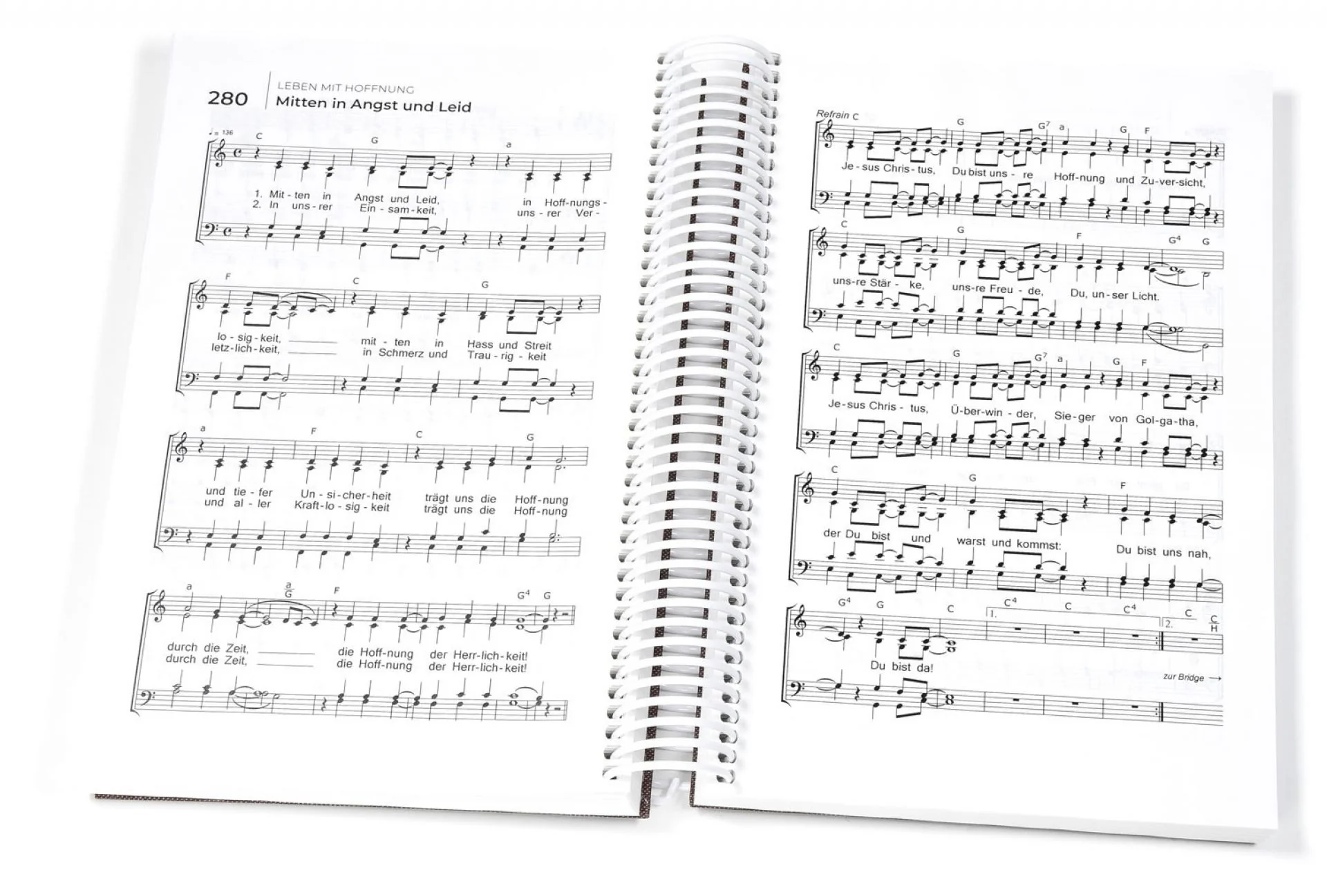 Das Liederbuch umfasst über 400 Lieder, in der Regel mit vierstimmigem Notensatz und Gitarrengriffen. In der Auswahl sind sowohl viele bewährte ältere Lieder als auch neue, zum Teil noch unveröffentlichte Lieder. Für viele ältere und bekannte Lieder wurden alternative Melodien und Notensätze geschrieben. Wir verbinden mit der Herausgabe die Hoffnung, dass beim Singen unsere Herzen weit und unsere Blicke erhoben werden.