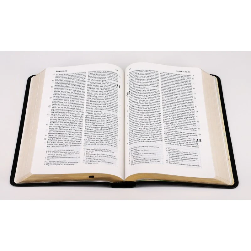 Die Bibel verfügt über ein ausgezeichnetes zweispaltiges Schriftbild. Im Anhang befinden sich Worterklärungen, Maße/Gewichte, Tabellen und farbige Karten.