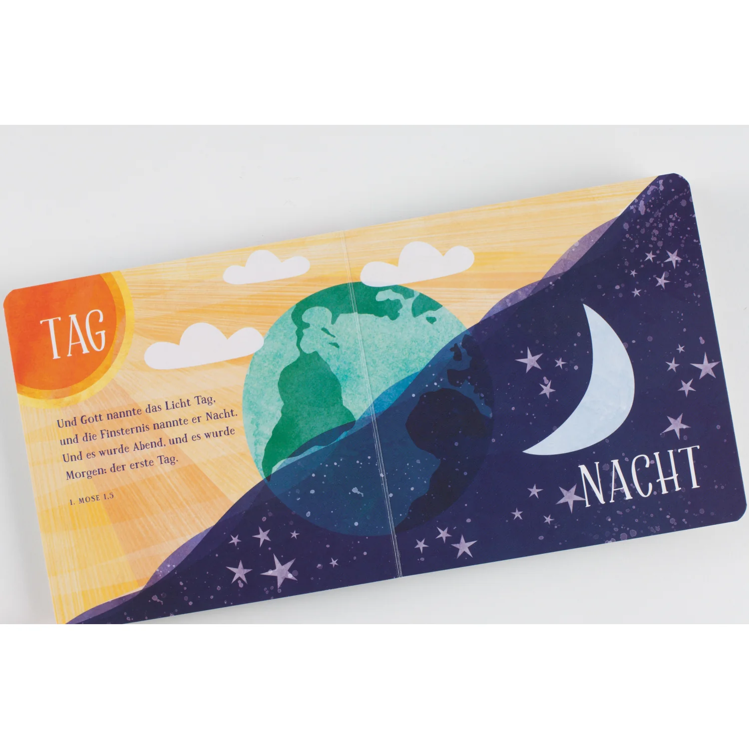 Die Baby-Bibel-Fibeln helfen dabei, kleinen Kindern zentrale Wahrheiten des christlichen Glaubens bereits in frühster Kindheit bekannt zu machen. Diese Gegensätze-Fibel erzählt die biblische Schöpfungsgeschichte.
