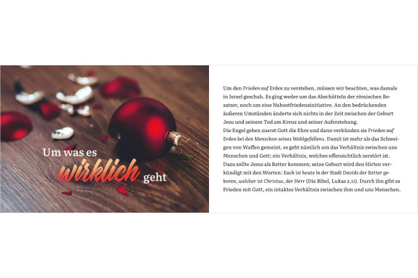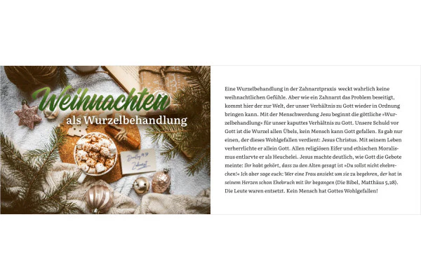 Mit diesem ansprechend gestalteten Heft sollen Menschen unserer Zeit mit der besten Botschaft erreicht werden und das Geschenk Gottes kennenlernen.