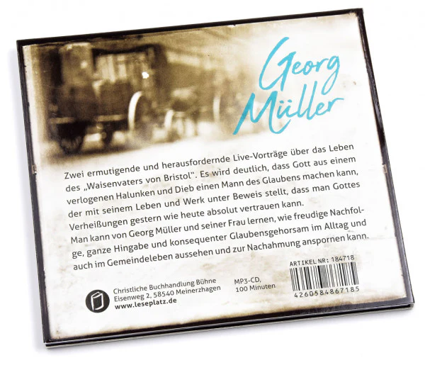 Zwei ermutigende und herausfordernde Vorträge über das Leben des Waisenvaters von Bristol. Es wird deutlich, dass Gott aus einem verlogenen Halunken und Dieb einen Mann des Glaubens machen kann, der mit seinem Leben und Werk unter Beweis stellt, dass man Gottes Verheißungen gestern wie heute absolut vertrauen kann.