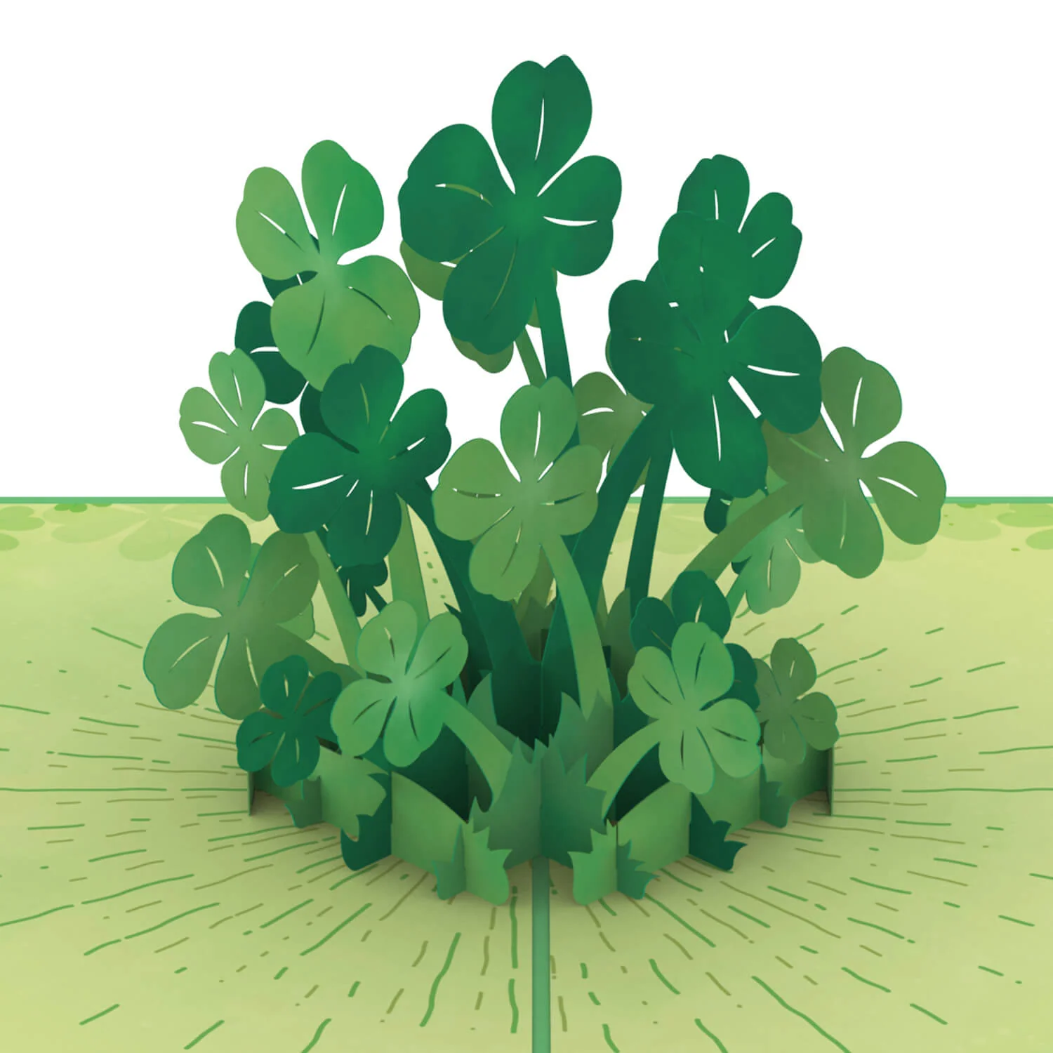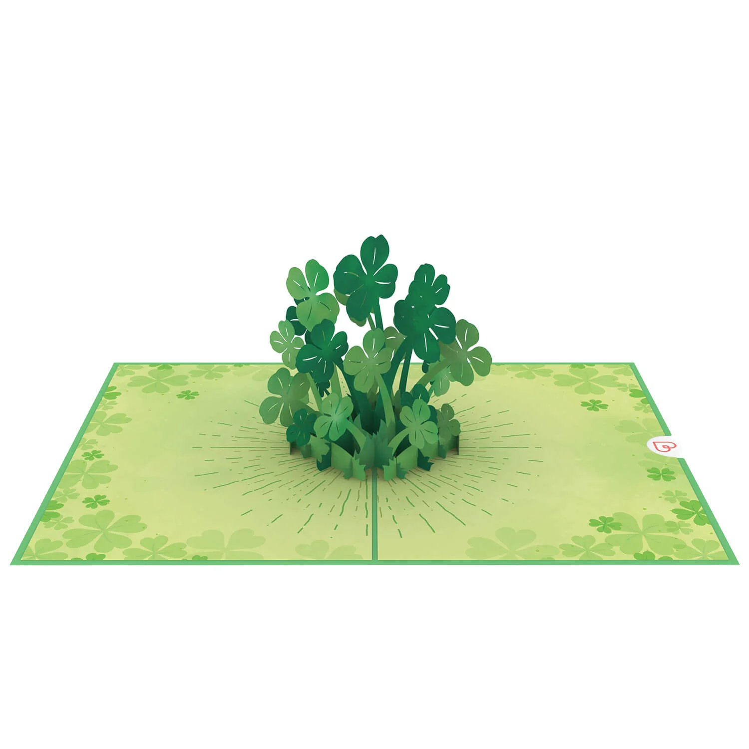 Beim Öffnen dieser besonderen Glücksbringer-Karte entfaltet sich ein ganzes Meer voller vierblättriger Kleeblätter – in klein und groß und verschiedenen Grüntönen! Die Innenseite der Karte ist zusätzlich mit vielen kleinen Kleeblätter illustriert. Bei so vielen Glücksbringern kann gar nichts mehr schiefgehen!