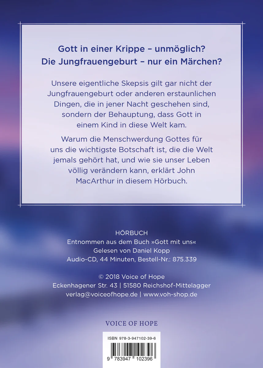 Diese Hörbuch ist ein Auszug aus dem vergriffenen Buch “Gott mit uns” von John MacArthur, gelesen von Daniel Kopp.
