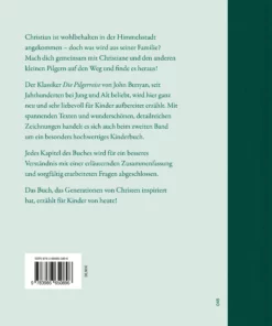 Christian ist wohlbehalten in der Himmelsstadt angekommen – doch was wird aus seiner Familie? Mach dich gemeinsam mit Christiane und den anderen kleinen Pilgern auf den Weg und finde es heraus! Der Klassiker Die Pilgerreise von John Bunyan, seit Jahrhunderten bei Jung und Alt beliebt, wird hier ganz neu und sehr liebevoll für Kinder aufbereitet erzählt. Mit spannenden Texten und wunderschönen, detailreichen Zeichnungen handelt es sich auch beim zweiten Band um ein besonders hochwertiges Kinderbuch. Jedes Kapitel des Buches wird für ein besseres Verständnis mit einer erläuternden Zusammenfassung und sorgfältig erarbeiteten Fragen abgeschlossen. Das Buch, das Generationen von Christen inspiriert hat, erzählt für Kinder von heute!
