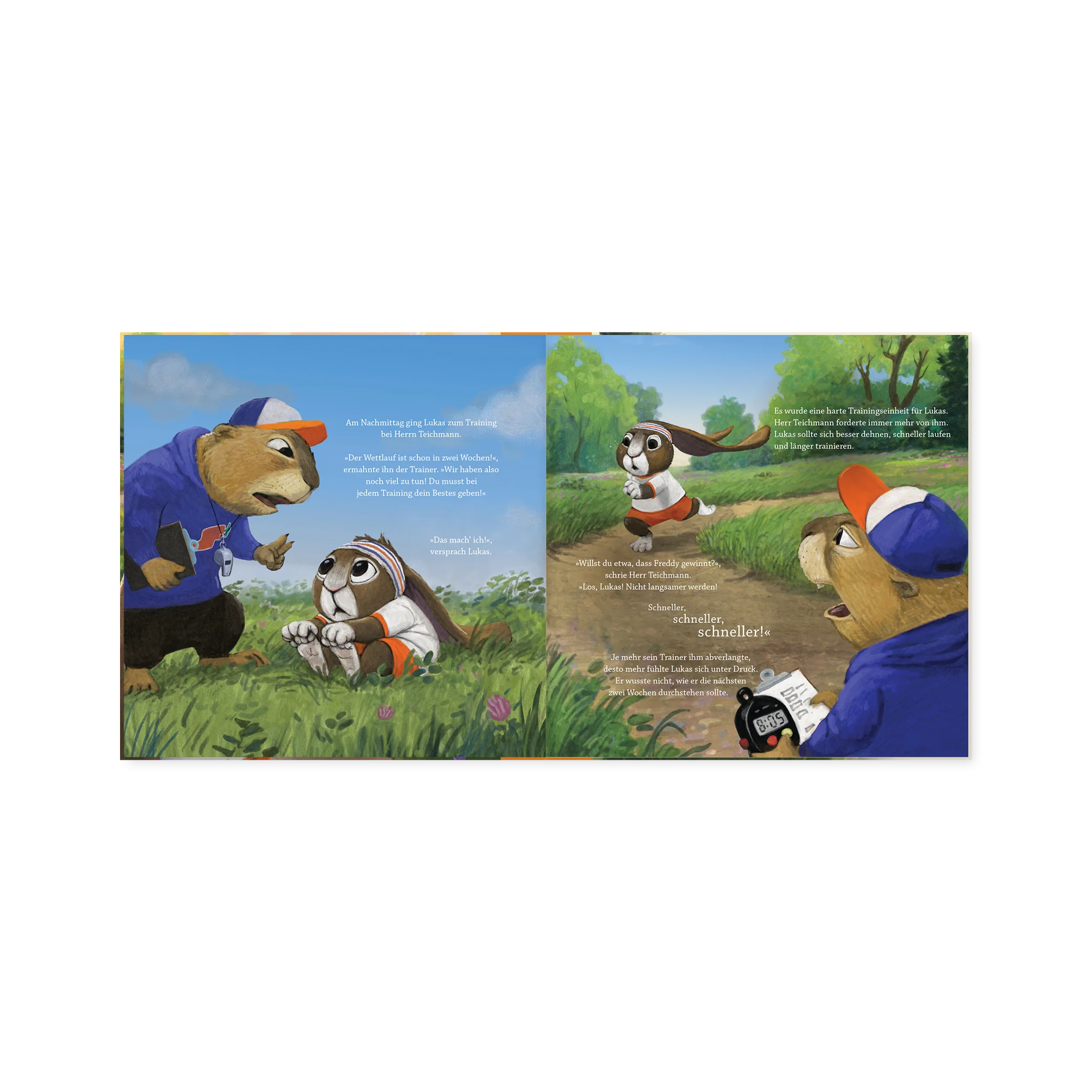 Ein Wettrennen steht an und Lukas weiß, dass er noch viel dafür trainieren muss. Auch sein Trainer Herr Teichmann spürt den Druck, unter dem sie stehen. Schon bald fühlen beide sich gestresst und lassen das auch alle anderen merken. Wie Lukas und sein Trainer lernen, die stressige Situation zu bewältigen, das lernen Kinder in diesem spannend erzählten und detailreich illustrierten Buch.