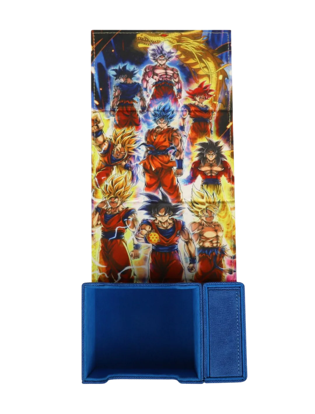 This Deckbox has a HAND PAINTED Metal Emblem on the Front. It consists of 2 different high quality Materials. The Front is elevated to give the Goku Shirt Vibe!