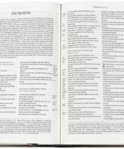 Neben Überschriften zur Kapitelübersicht, Parallelverweisen und textlichen Anmerkungen beinhaltet diese kompakte Ausgabe einen ausführlichen Anhang mit Sach- und Worterklärungen, Diagrammen und Tabellen, diversen Abbildungen, farbigen Karten sowie verschiedenen Bibelleseplänen.