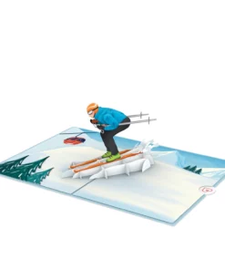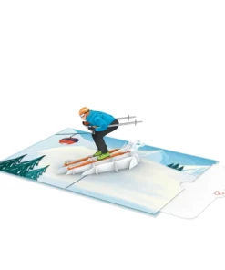 Ab auf die Piste! Beim Öffnen der Pop Up Karte entfaltet sich ein:e Skifahrer:in in voller Skimontur auf einer winterlichen Skipiste. Mit dieser Skifahrer Pop Up Karte bringst du Skispaß an jeden Ort, ganz egal, wo du gerade bist!