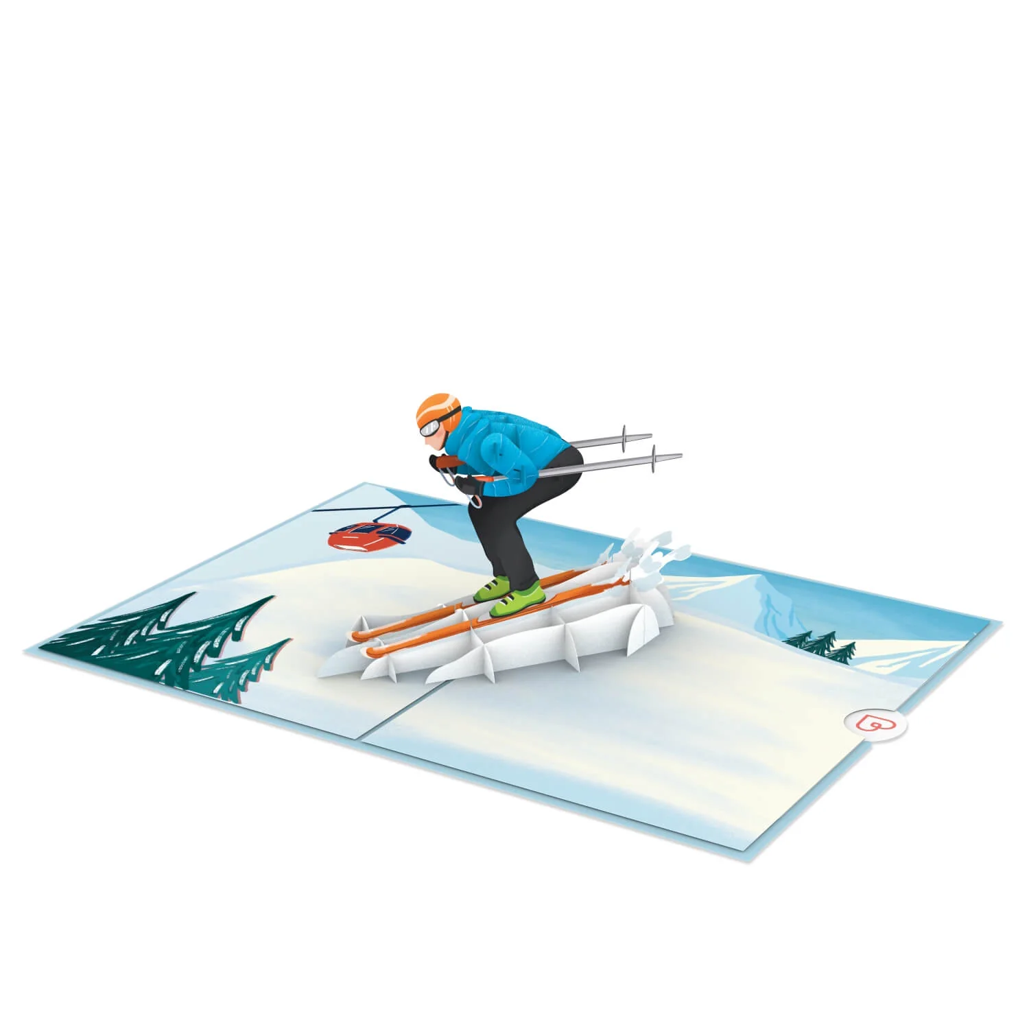 Handgemachte Pop Up Karte Skifahrer mit 3D-Effekt