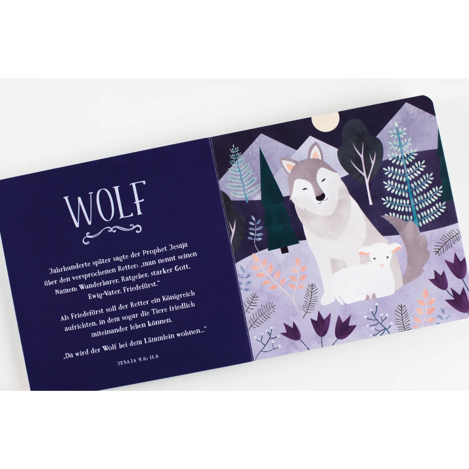 Die Baby-Bibel-Fibeln helfen dabei, kleinen Kindern zentrale Wahrheiten des christlichen Glaubens bereits in frühster Kindheit bekannt zu machen. Diese Tier-Fibel spricht von Tieren, die bei den Verheißungen des ersten Kommens des Messias eine Rolle spielten.